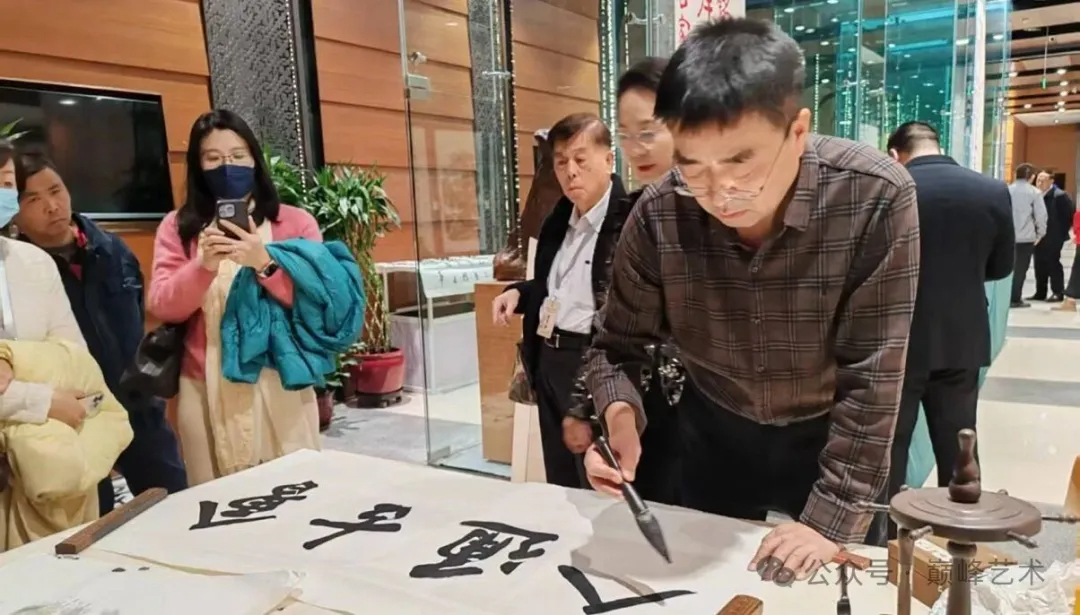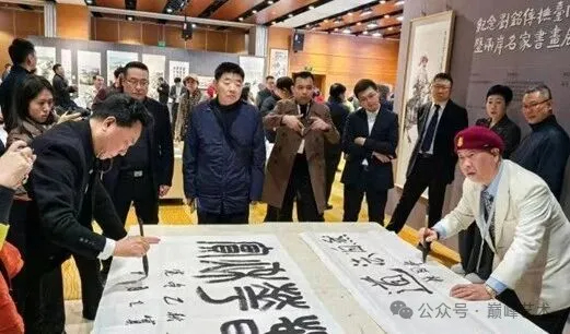▼北京五洲和平書畫院高級顧問、孔子第74代孫孔繁順特別為此書畫展賦詩一首,用遒勁的魏碑體書寫,並參加了兩岸交流筆會: